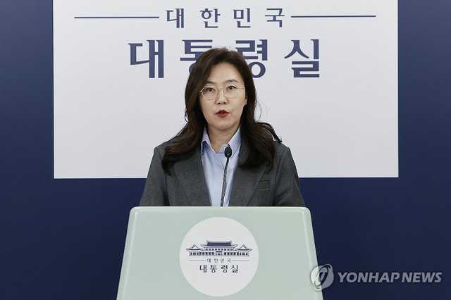 (서울=연합뉴스) 김도훈 기자 = 강유정 대변인이 12일 서울 용산 대통령실 청사에서 캄보디아 스캠 범죄 대응 성과 관련 브리핑을 하고 있다. 2025.12.12 [대통령실통신사진기자단] superdoo82@yna.co.kr